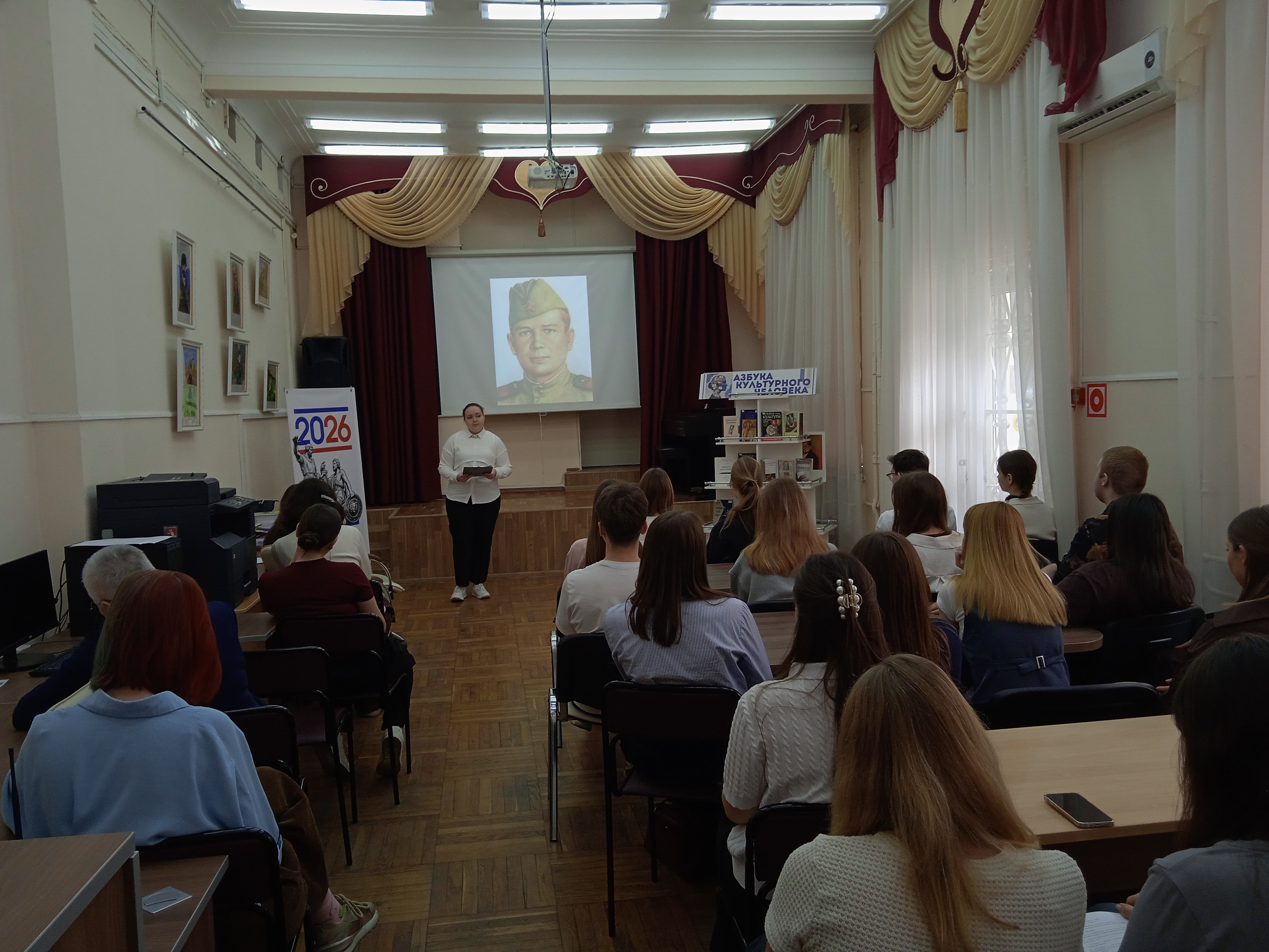 25 марта 2026 г. в ЦГБ им. Некрасова прошло очередное мероприятие ККОО «Герои Отечества» проекта «Историческая память и преемственность поколений» - встреча с авторами сборника очерков «Героизм – имя собственное» (2 том).