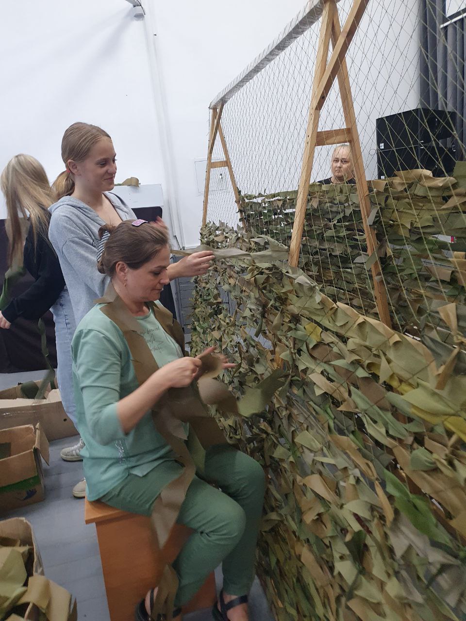 В Крымском районе организована слаженная работа по изготовлению маскировочных сетей для фронта. При Храме Михаила Архангела в г. Крымске сформировано волонтерское движение «Сестры в помощь солдатам». Титова Надежда Михайловна непосредственно возглавляет группы по плетению сетей вот уже 3 года.