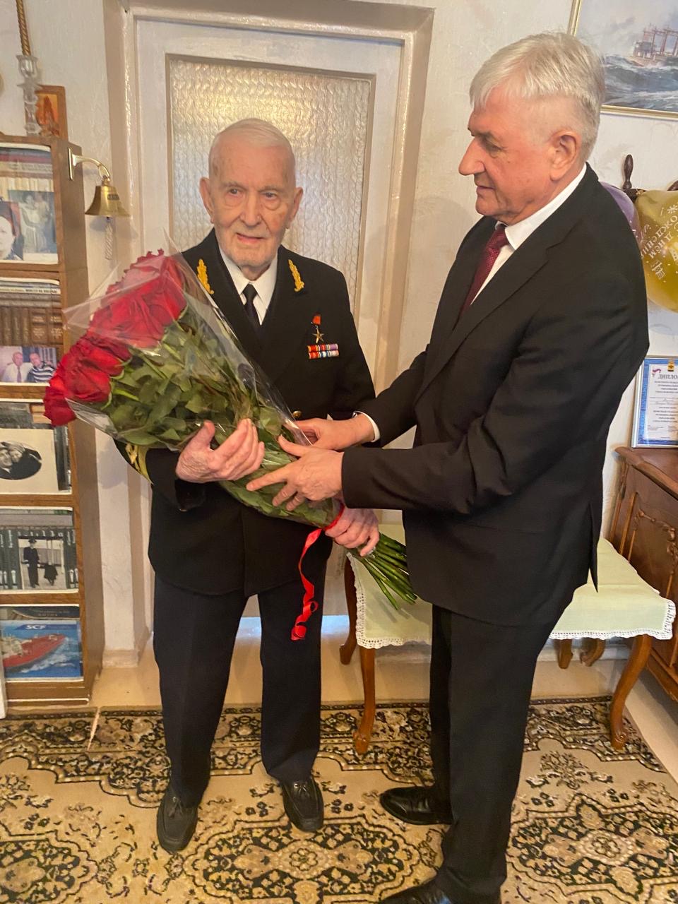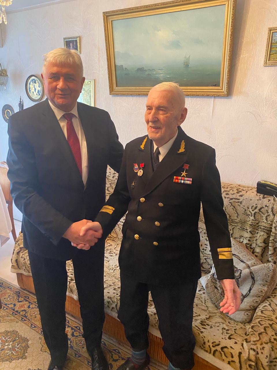 Героя Социалистического Труда члена Новороссийского филиала ККОО"Герои Отечества" Федченко Геннадия Николаевича, которому в этот день исполнилось 95 лет.