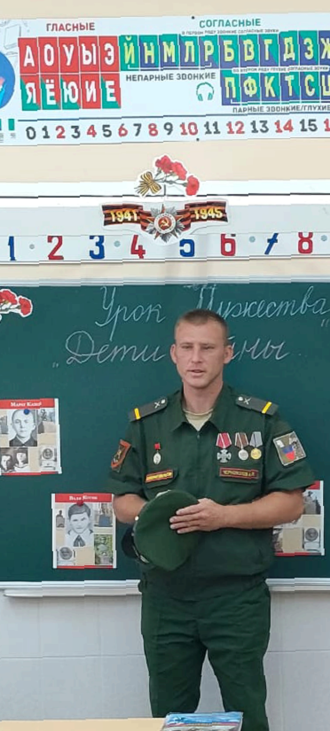 Почетный гость урока - Черноволов А.В.,председатель Лабинска ККООО "Герои Отечества" ветеран СВО.