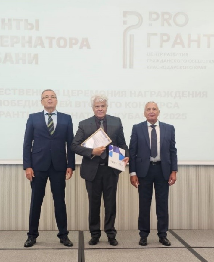 16 сентября в г. Краснодаре члены ККОО «Герои Отечества» приняли участие в торжественном награждении победителей второго конкурса «Гранты губернатора Кубани» 2025 года. Председатель организации Крохмаль Виктор Васильевич подписал договор о предоставлении гранта автономной некоммерческой организацией «Центр развития гражданского общества Краснодарского края» для поддержки общественно полезного проекта «Историческая память и преемственность поколений». Реализация грантового проекта начнется уже в октябре.