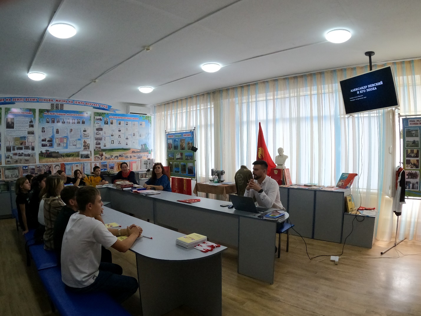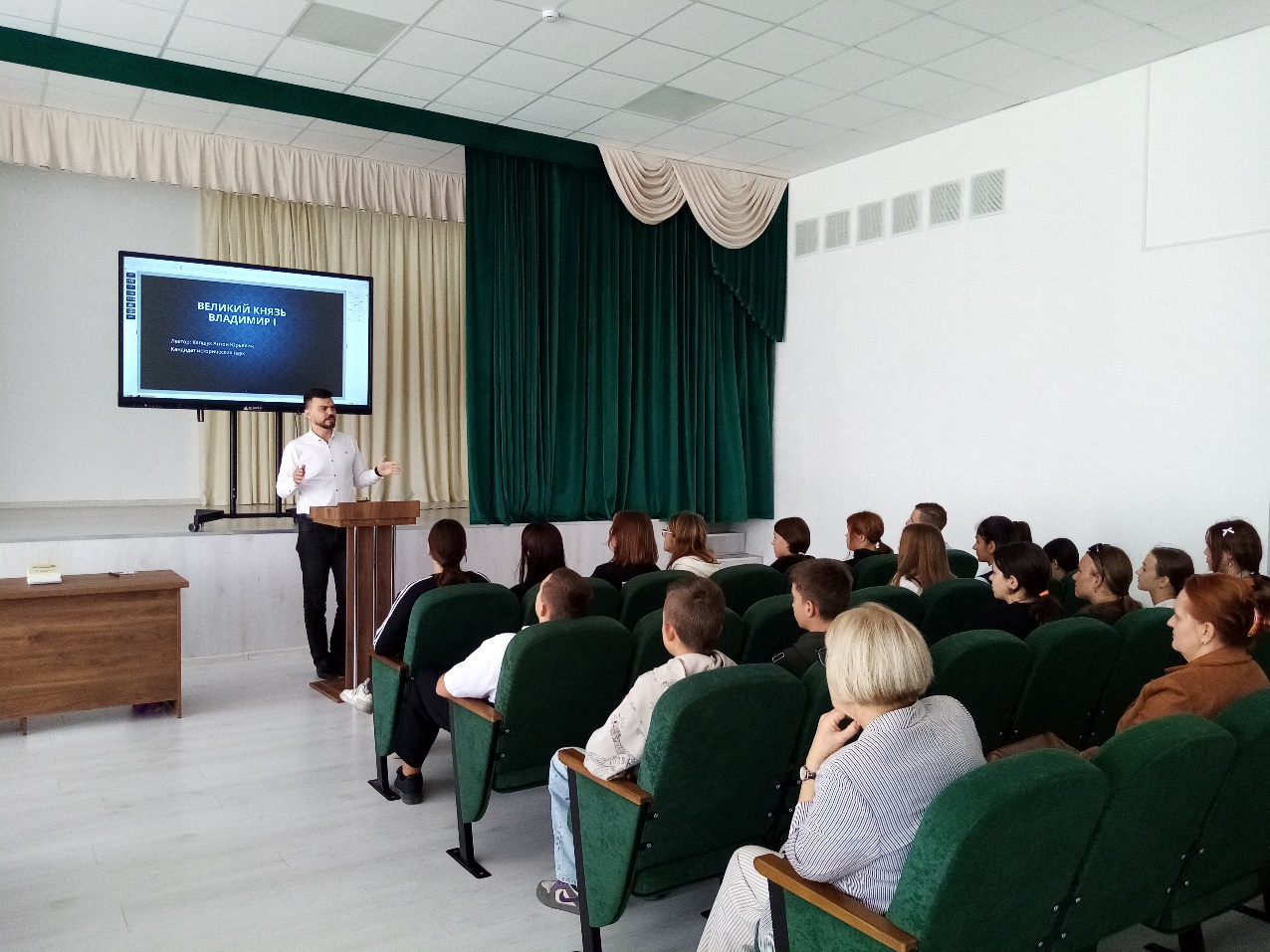 Далее в рамках проекта школьники станицы Курчанской и поселка Красный Октябрь встретились с кандидатом исторических наук, старшим преподавателем кафедры истории России Капшук Антоном Юрьевичем. Историк провел для ребят познавательные лекции, посвященные историческим личностям России. Вниманию учащихся МБОУ СОШ № 4 имени Героя Советского Союза Павла Ивановича Кашурина (ст. Курчанская) была представлена лекция на тему: «Великий князь Владимир I – основатель российского государства», а для школьников МБОУ СОШ № 20 имени Ю.А. Гагарина (п. Красный Октябрь) проведено занятие на тему: «Александр Невский и его время». Антон Юрьевич Капшун акцентировал внимание ребят на том, что интерес к истории, обращение к историческим периодам разного времени может быть увлекательным делом и приносить много пользы для личностного развития.