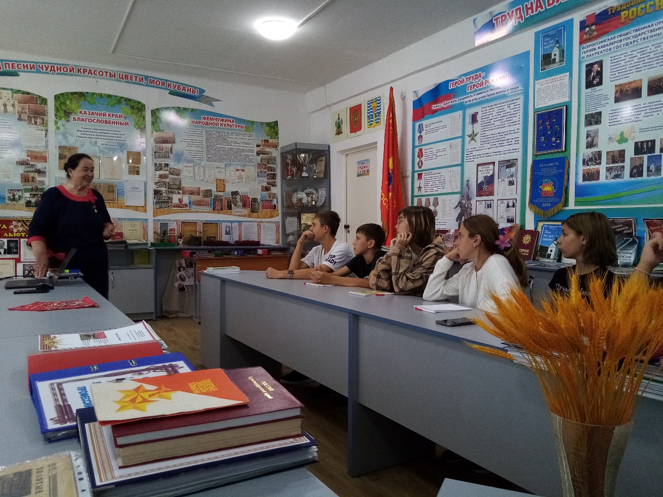 20 сентября члены ККОО «Герои Отечества» в преддверии памятной даты – Дня освобождения станицы Курчанской, провели серию мероприятий для школьников Темрюкского района в рамках проекта «Патриотизм – имя собственное», реализуемого с использованием средств гранта Губернатора Кубани на развитие гражданского общества.