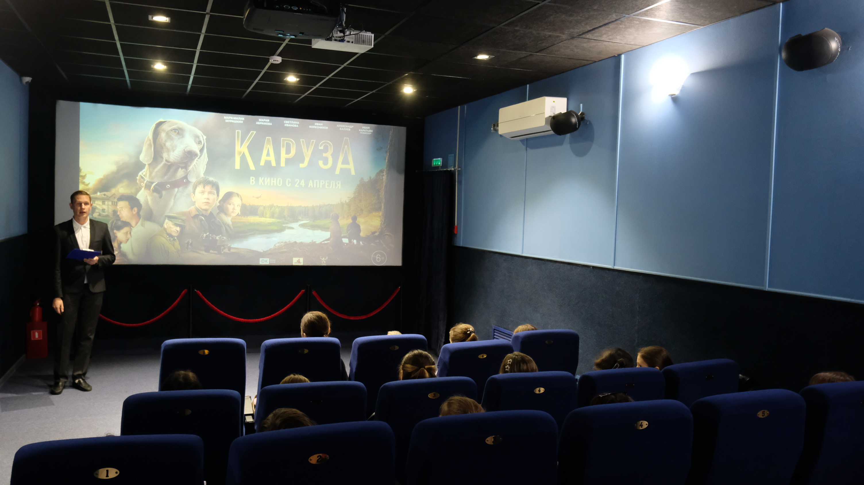 Вниманию ребят был представлен художественный фильм режиссера Ивана Харатьяна «Каруза» на основе реальных событий – истории мальчика Мити и его собаки, спасших 16 жителей блокадного Ленинграда.