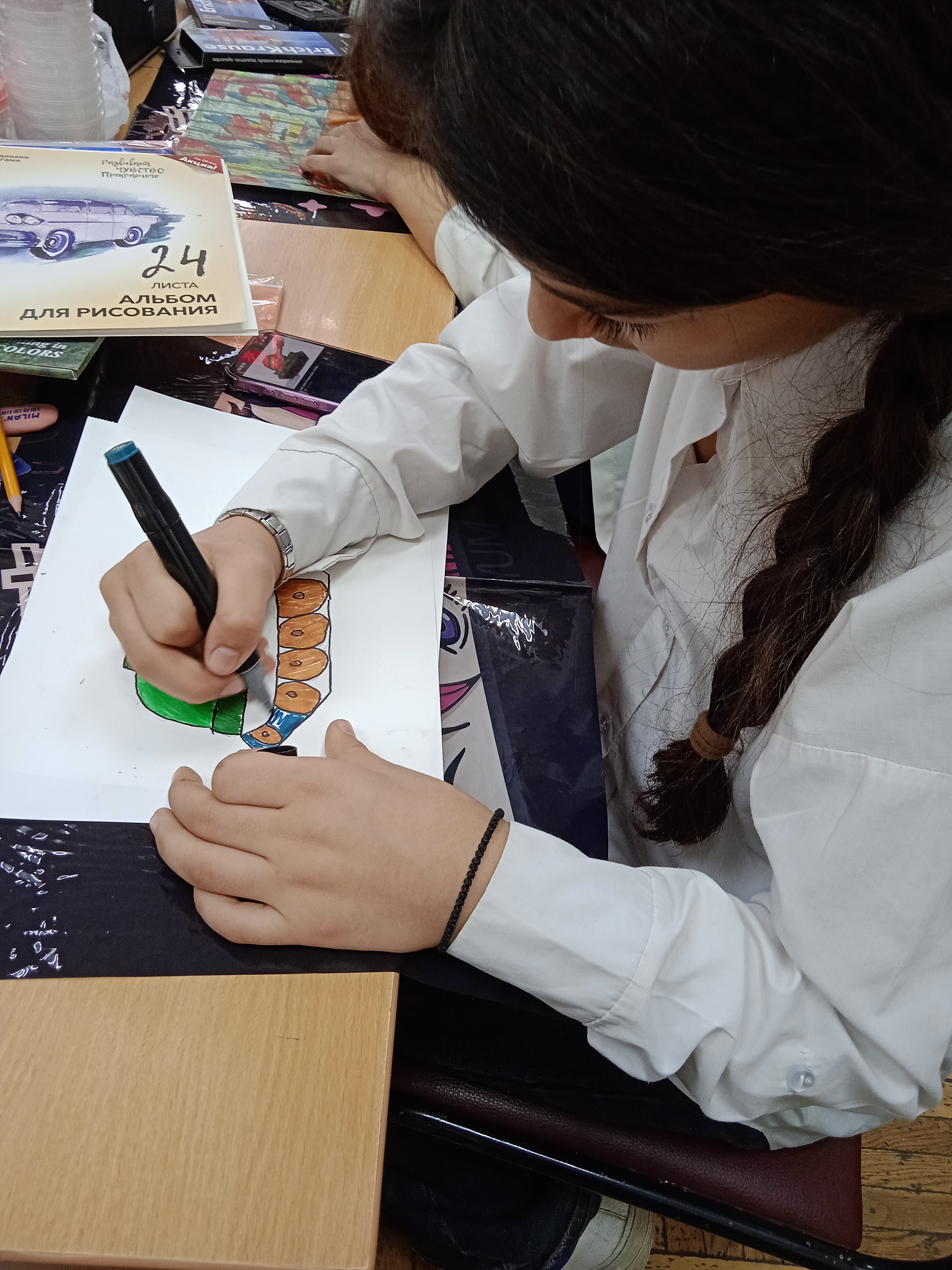 В рамках гранта была проведена встреча школьников с авторами сборника 2 тома очерков «Героизм – имя собственное» - Владиславом Тугаевым, аспирантом 3 курса КГИК и Анастасией Суворовой, студенткой 3 курса факультета журналистики КубГУ, которые поделились личным опытом работы с архивными документами, в том числе – сбором и аналитическим описанием редких архивных материалов. Ребята с большим вниманием выслушали рассказ о подвигах героев – кубанцах в годы Великой Отечественной войны и изобразили свои впечатления в виде рисунков.